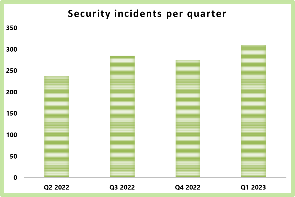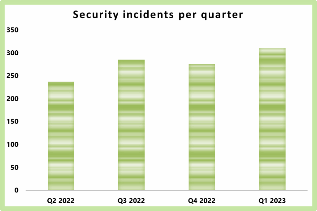 This represents a 12.7% increase on the number of security incidents that we saw in Q4 2022, but the number of breached records has increased more than threefold.