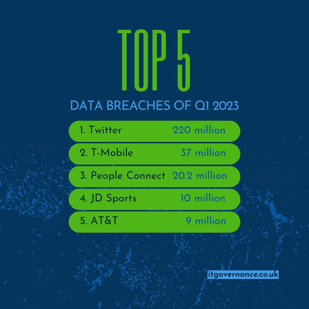 IT Governance discovered 310 security incidents between January and March 2023, which accounted for 349,171,305 breached records.