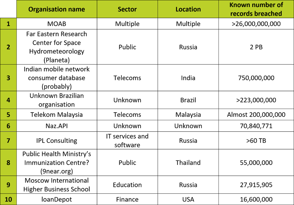 1. The ‘mother of all breaches’: more than 26 billion records exposed