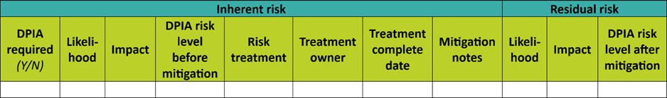 Andy’s ROPA template doesn’t fit (legibly) into one screenshot. Instead, we’ve replicated his Excel-based template in segments, which you can easily tailor to suit your needs.
