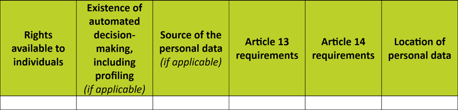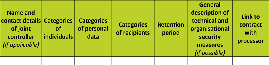 I also use it for data flow information and as a risk register. Those aren’t explicit GDPR requirements, but having that information handy certainly helps you meet other legal and regulatory requirements and keep data secure.